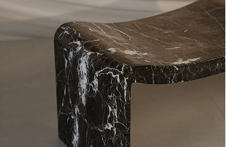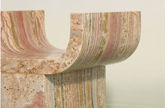 It is translucent and expressive, with dramatic veining. We use it to define form in lighting, sculptural furniture such as armchairs and consoles, collectible objects, and plinths.
